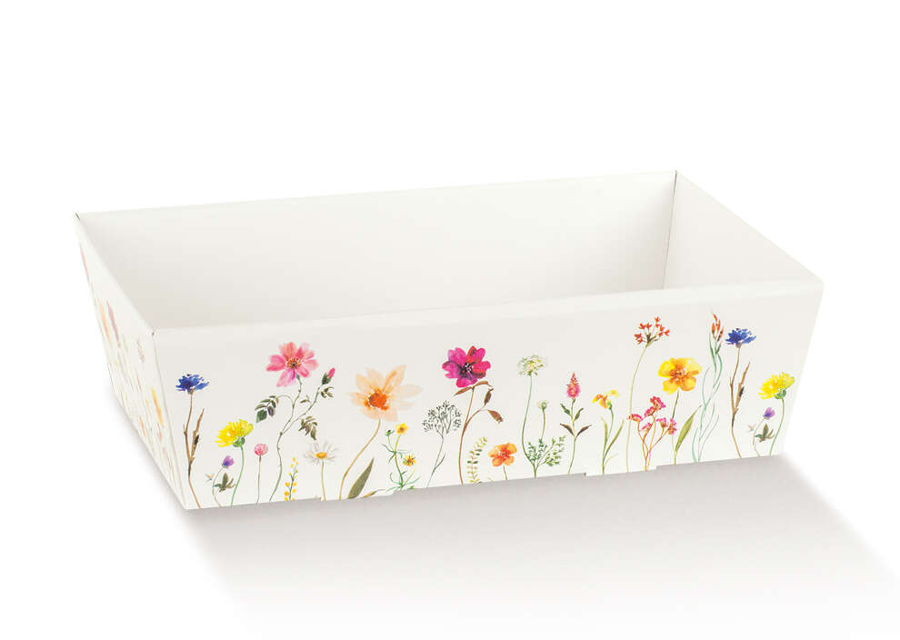 | S-129689S | Rectangular basket with "Spring Flowers" pattern, 29x23x8.5cm | White |